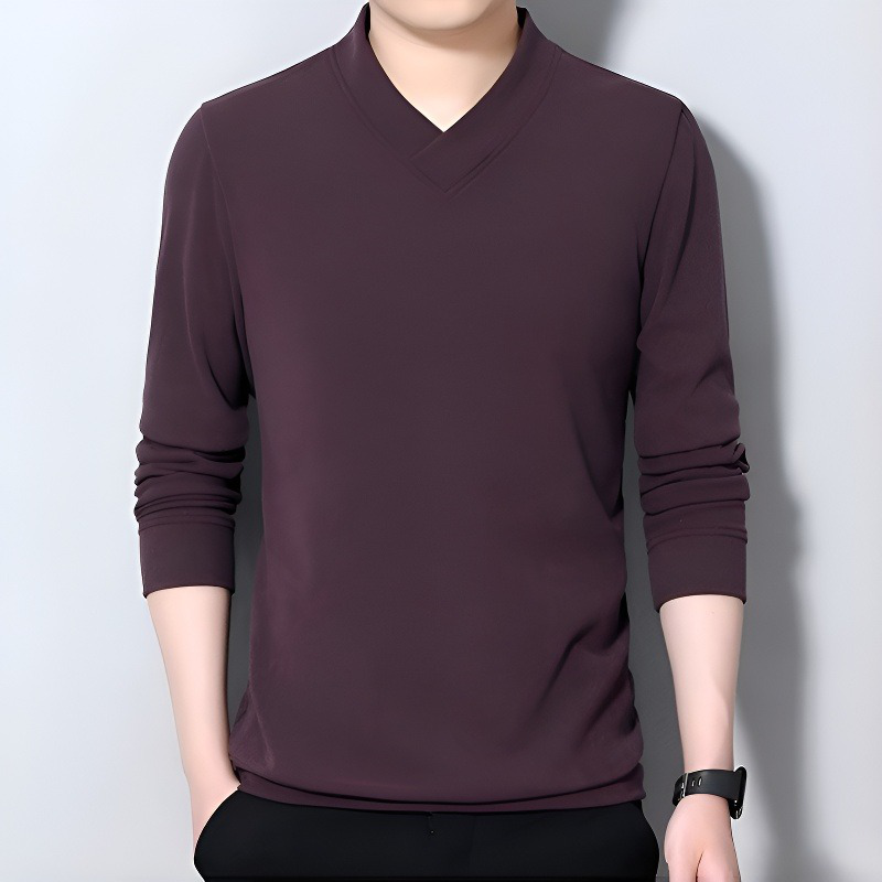เสื้อยืดผ้าแคชเมียร์คอวีแขนยาวของผู้ชาย